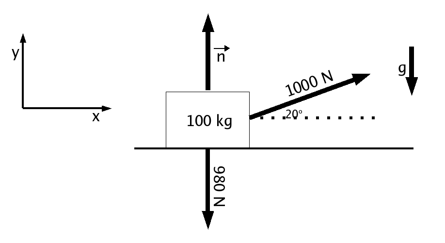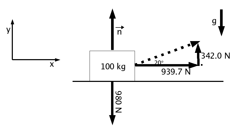 the 939.7 N, so F=ma in the X direction becomes: 939.7 N = (100 kg)(a)