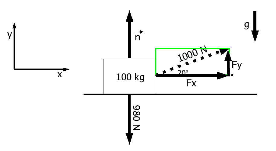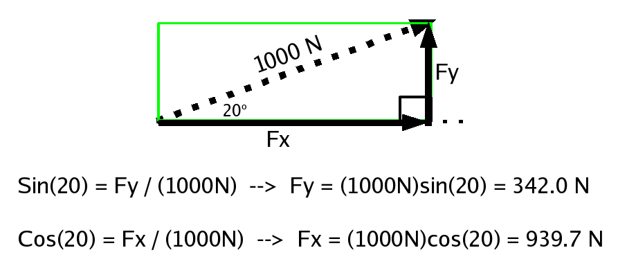 hypoteneuse was 1000 N, and we knew the angle shown
